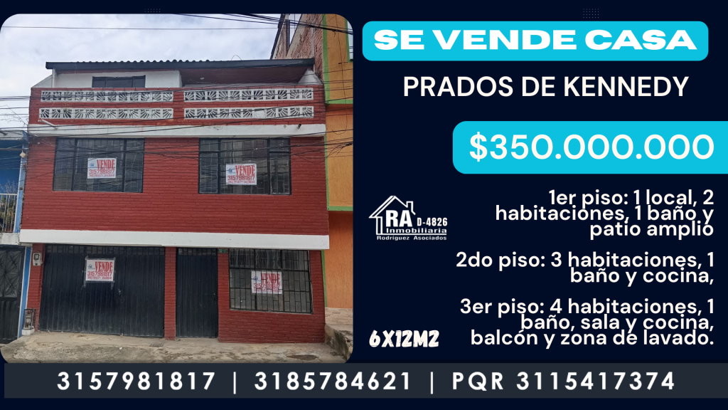Casa Rentable Con Local En Prados De Kennedy, Excelentemente Ubicada D-4826 Casa En Venta De Tres Niveles En El Barrio Prados De Kennedy, Ubicada En Un Sector Residencial Tranquilo Y Seguro, Con Excelente Acceso A Transporte Público, Cerca De La Av. Primera De Mayo, Instituciones Educativas, Comercio Cerca, Con Un área Lote De 6 Metros De Frente Y 12 Metros De Fondo, Un áre...