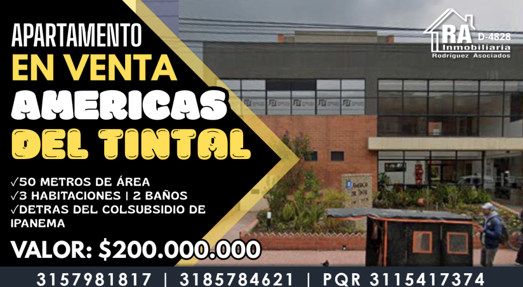 Apartamento En Venta En Américas Del Tintal D-4828 Apartamento En Venta Con Excelente Ubicación Apartamento De 50 M² Con Vista Externa, Ubicado En El Reconocido Conjunto Américas Del Tintal, Una Zona Residencial De Alta Demanda Gracias A Su Tranquilidad, Excelente Ubicación Y Constante Valorización. El Inmueble Cuenta Con Una Distribución Funcional Y Acogedora. Dispone ...