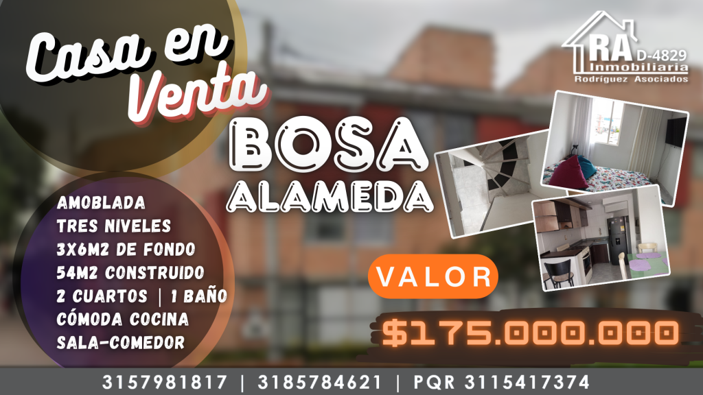Casa De Tres Pisos En Venta En El Conjunto Alamedas Bosa – Portal 2 El Porvenir. D-4829 Una Excelente Oportunidad Para Vivir O Invertir. Cuenta Con Tres Metros De Frente Por Seis De Fondo, Y Un área Construida De 54 Metros Cuadrados. En El Primer Piso, Encontrarás Sala Comedor Y Una Cómoda Cocina. En El Segundo Piso, Una Habitación Con Clóset Y Baño. Y En El Tercer Pis...