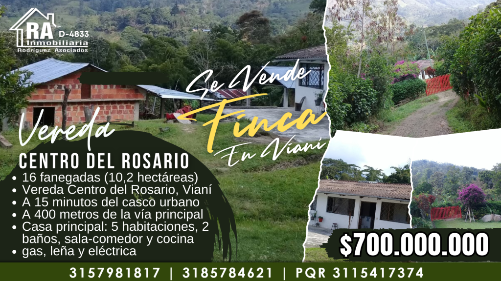 Venta De Finca Productiva En Viani Vereda Centro Del Rosario D-4834 Se Vende Espectacular Finca Productiva De 16 Fanegadas (aprox. 10.2 Hectáreas) Ubicada En La Vereda Centro Del Rosario, Vianí. Situada En Una Ubicación Privilegiada A Solo 15 Minutos Del Casco Urbano Y A 400 Metros De La Carretera Principal. La Propiedad Cuenta Con Una Variada Producción Agrícola Que Incl...
